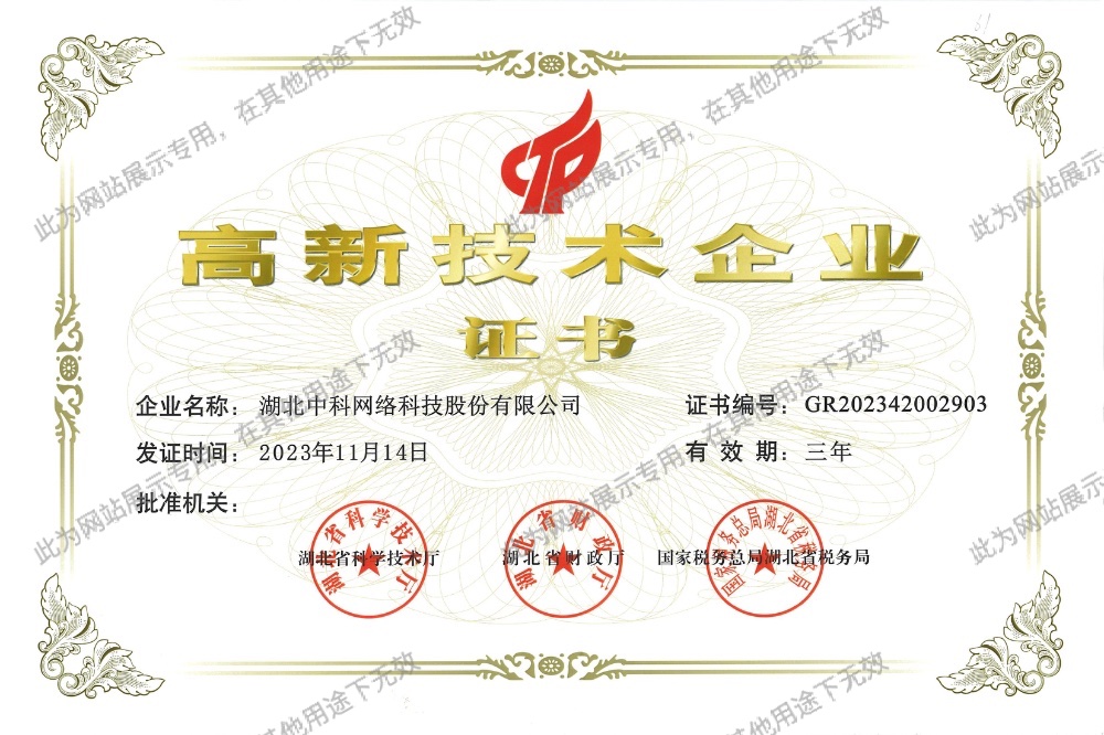 湖北中科網(wǎng)絡(luò)科技股份有限公司成立于1998年5月,注冊(cè)地為武漢市武昌區(qū),總部位于中國(guó)光谷。是智能化、信息化行業(yè)的領(lǐng)軍企業(yè),國(guó)家認(rèn)定的高新技術(shù)企業(yè)、湖北省專(zhuān)精特新企業(yè)。